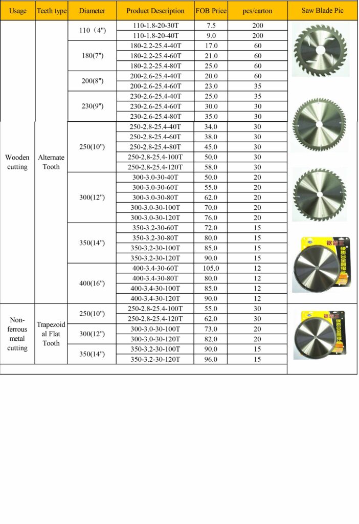 TCT Saw BladeSHIJIAZHUANG CHANGSHERNGTCT SAW BLADESUBJECT-SPECIFIC PRODUCT QUOTATIONSAll prices settled in CNY